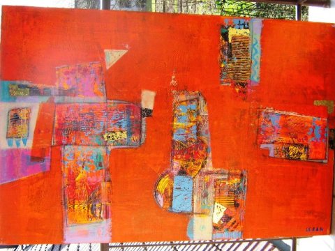 SAŠO LEBAN Abstrakcija z zlatimi lističi (80*120cm)- mešana tehnika